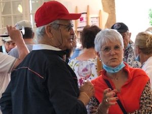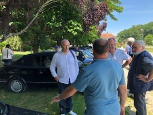 Rendez-vous était donc fixé à 9 h 30 le 26 juin au restaurant-bistrot « Chez Simon » au Haut d’ESPOEY où nous attendait en extérieur et sous un soleil radieux, café et viennoiseries ainsi qu’une très belle plaque commémorative de la sortie remise par André.